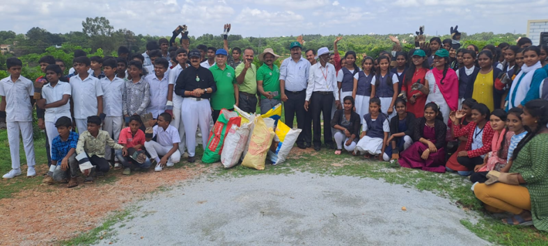 100 students of Sai Shankar Vidyashala school participated in a plogging drive organized by Green Circle and People’s Trust. The students were given gloves and collection bags. About 50 kgs of plastic waste was collected and handed over to Rajanagunte Panchayat van. Earlier students had formed several groups and searched for plastic waste in nearby green area. Green Circle members Vasanthakumar, Kumar kalyandurg, Selvarajan and Ashok joined the drive and collected plastic trash. The students were accompanied by teachers who also participated in collecting the trash.