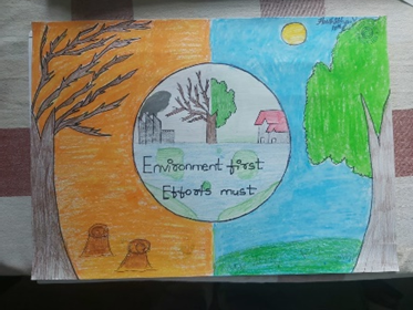 The above slogan by a student Charu Dhuruthi was the best part during Green Circle Drawing competition. The drawing competition was part of the environment day celebration which was participated by 150 children together from Junior and senior children. Green Circle arrange drawing sheets and crayons for the junior children. One hour time was given. Senior children were given the topics like Save nature for future, conserve water, Go green, go clean. The juniors were given topics like trees, nature or animals. A 5-year-old first standard student drew a tiger in an awesome manner. For curiosity, the jury gave the sheet to a teacher and asked her to identify the animal in the picture. The fact that the teacher was able to call it a tiger proved the drawing skill of the child. ‘The drawings were beyond our expectation; the children are highly talented’ said Vasanthakumar of Green Circle.