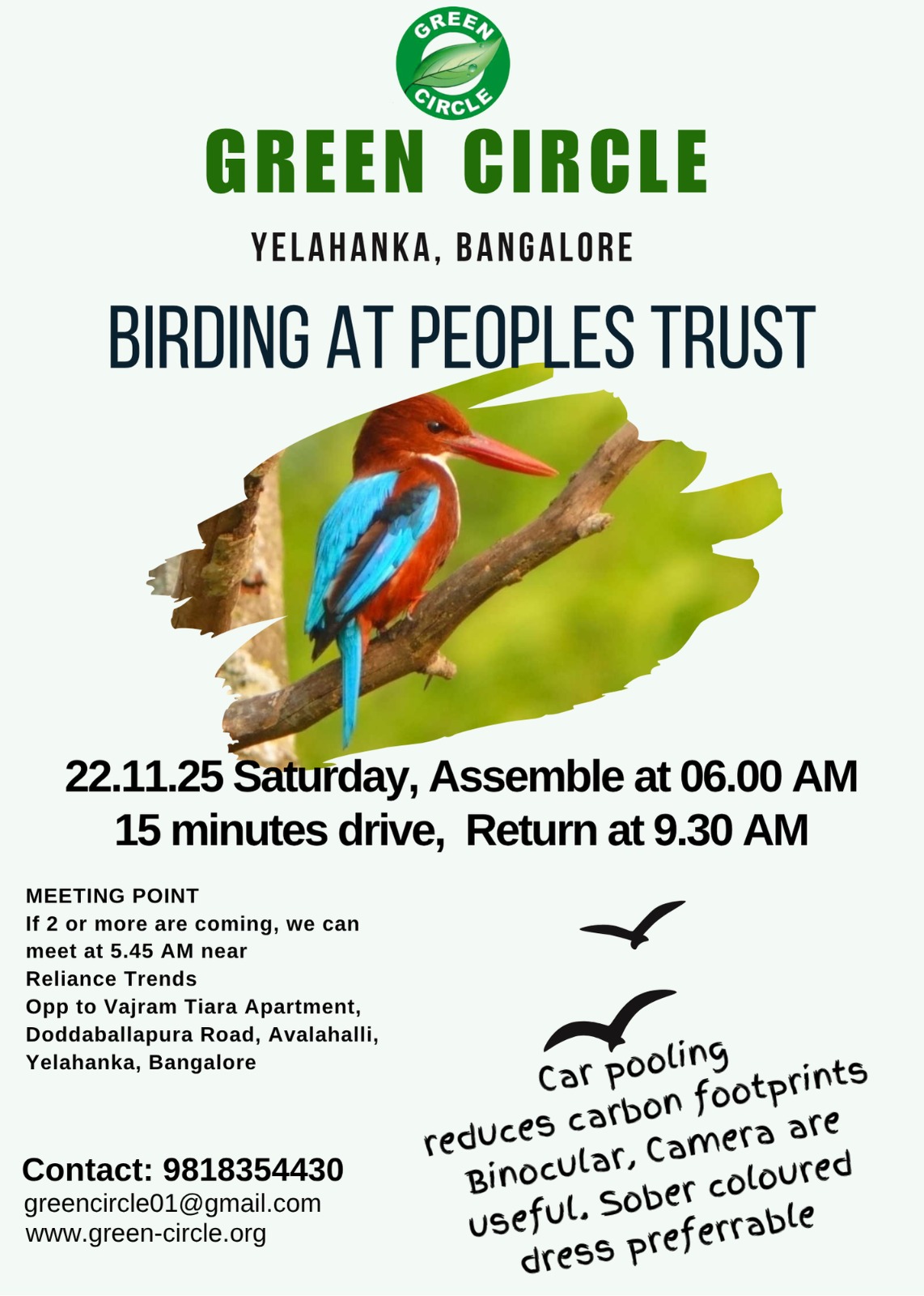 Green Circle birding & wildlife community listed birds early in the morning. Some species identified by them included the Golden Oriole, Zitting Cisticola and Grey Hornbills. Karthik, Vaijayanthi, Namrata and Selva participated in the bird watching and listing. The survey was undertaken in the Naniah park and People’s Trust green area. Birders recorded a list of 50 species in ebird portal