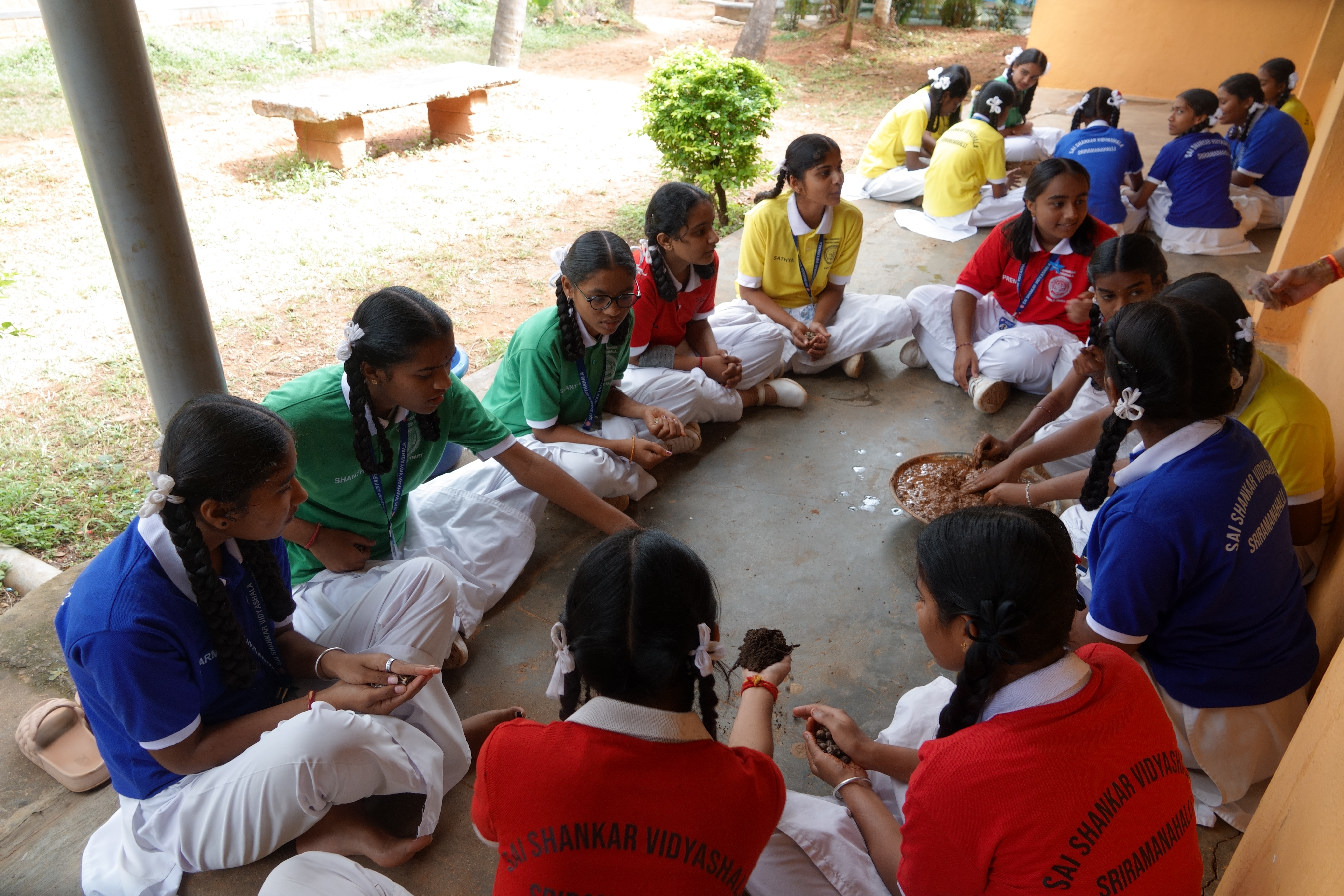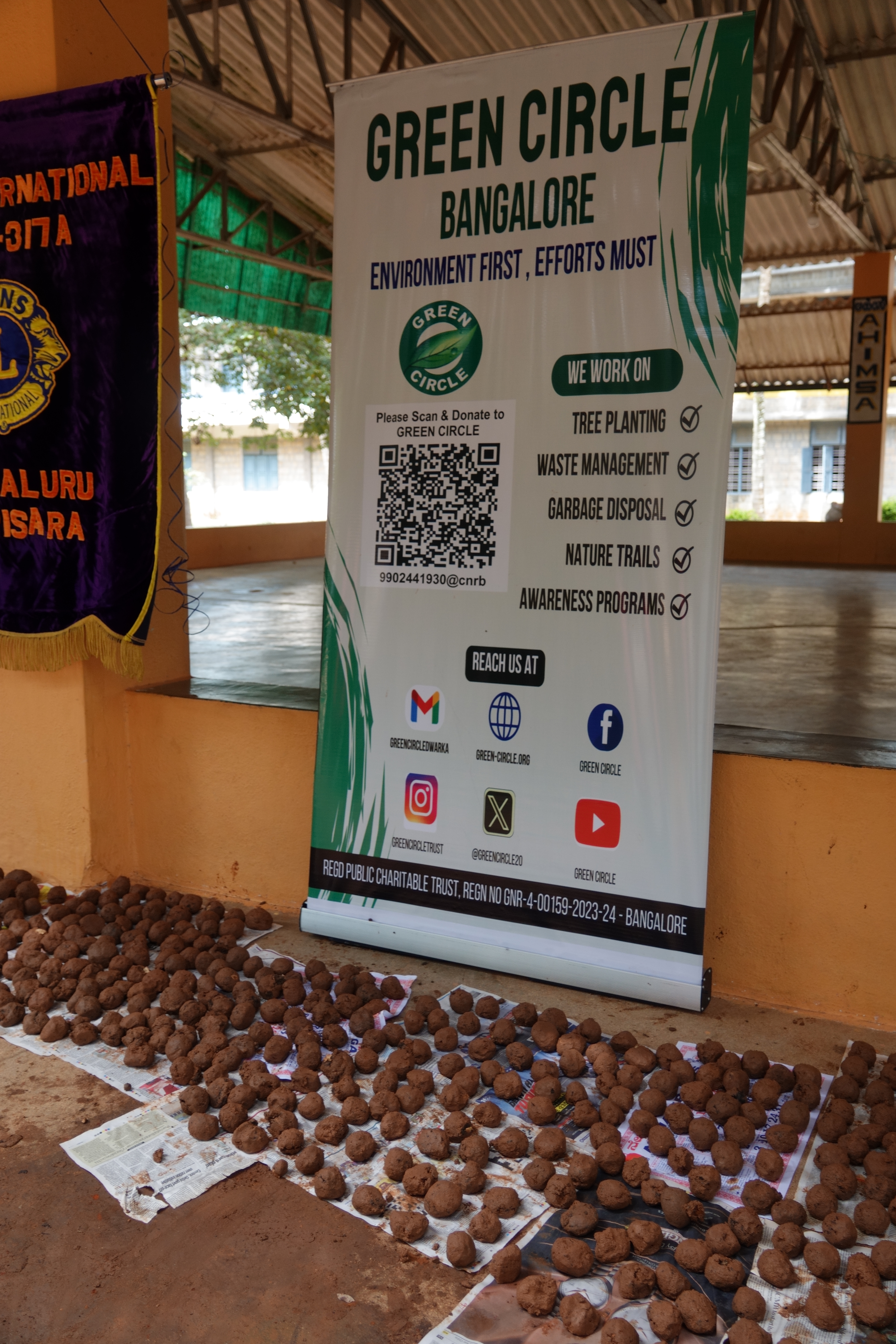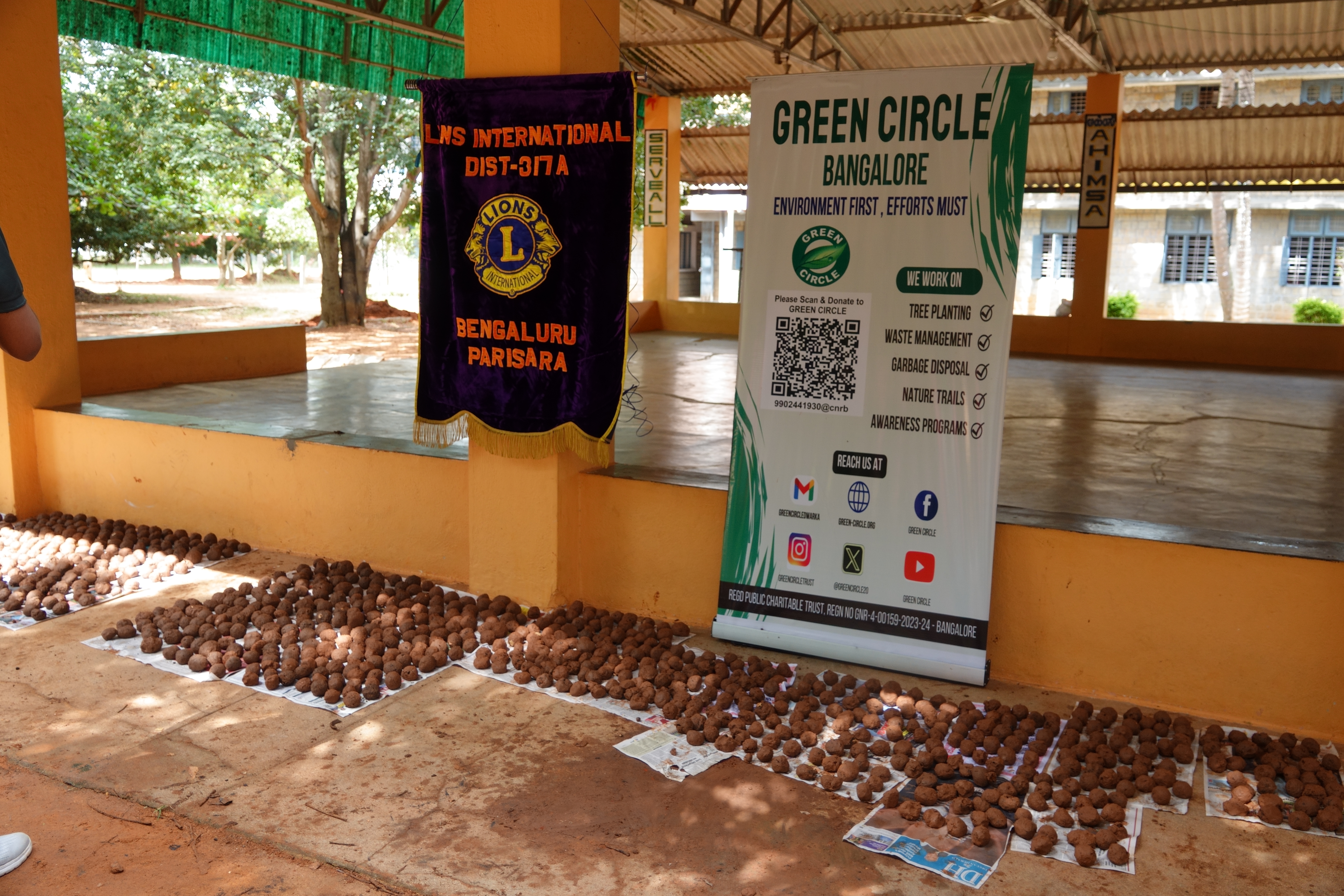 A Seedball making project by the Lion’s Club of Bengaluru Parisara-Green Circle and People’s Trust in which 60 children from Sai Shankar Vidya Shala and members of Leo Club of Mewa Vanguard Business School participated. Dr V Selvarajan, Chairman of Green Circle, conducted the training for seed ball making. Harish Uthaiah, Managing Trustee of People’s Trust welcomed the gathering. Manjunath, President of Lions Club, thanked the audience for the support. 2056 seedballs were made by 8 teams of students who learnt the art of seed ball making. From Green Circle, Kumar kalyandurg, Vasanth Kumar, Sandip Kumar and Biju participated in the program