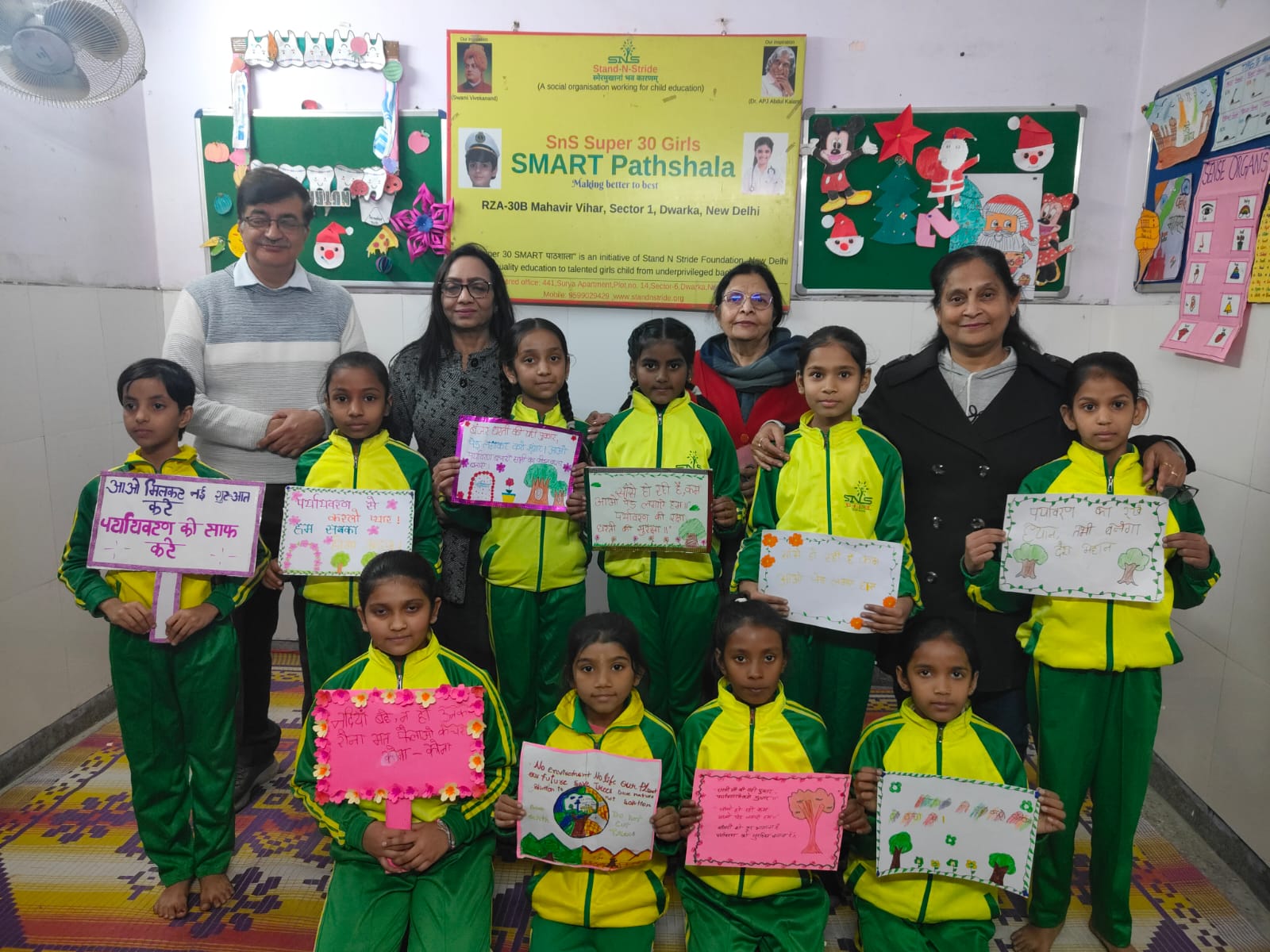 Dwarka: An awareness program on the prevention of pollution and its impact on health was held at the Super 30 Centre, Mahavir Enclave. Romila Gandhi and Seema Mittal apprised the children about the importance of the 3 Rs—Reduce, Reuse, and Recycle—and shared simple ways to help prevent pollution. Chitra Jain and Anuraag judged the posters prepared by the Super 30 girls on environmental themes. The girls presented skits and poems and also recited slogans highlighting environmental issues and the need for conservation. Certificates and refreshments were distributed to all the children at the end of the program.