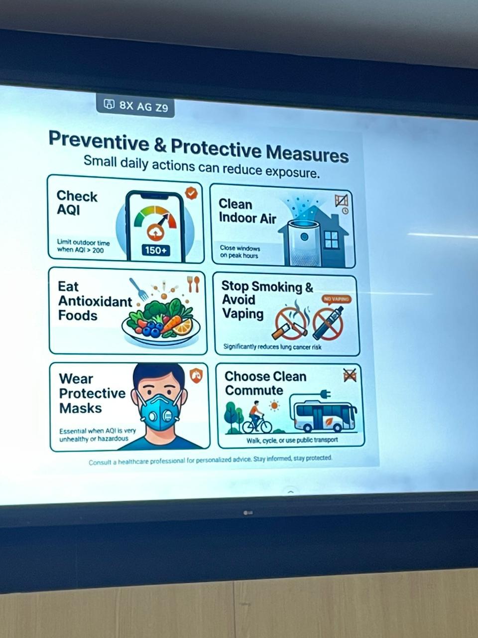 Green Circle Dwarka Chapter organized a health talk on pollution at Max Hospital on January 24, 2026. A total of 34 participants attended the event. The program began with A.K. Saigal, who spoke about the activities and initiatives of Green Circle. This was followed by an informative session led by Dr. Shubhanshu Raj Goyal, who explained the harmful effects of air pollution on the lungs. Dr. Shivangi Sundaram, a consultant in surgical oncology, then discussed the negative impacts of air pollution and its link to cancer. After the talks, a question-and-answer session was held, during which attendees expressed their satisfaction with the discussions. Raj Agnihotri and Anurag Mohan encouraged everyone to contribute to Green Circle’s future endeavours. Chitra Jain and Seema Mittal presented potted saplings to the speakers as a token of appreciation. Romila Gandhi, on behalf of Green Circle, thanked the speakers, Max Hospital, and the audience for their participation. Nearly 35 members participated.