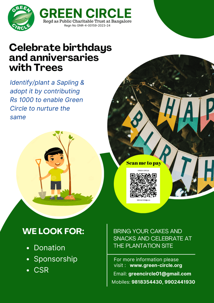 Saplings are normally planted and then forgotten. But we differ from others. After saplings are planted we need to nurture them regularly. We water the plants, remove the weeds around the planted saplings and watch the growth of the same. For this purpose, we welcome donors to adopt a tree by paying Rs 1000/-. We will take care of the trees. See the flyer given below and scan the QR Code to remit the sum. Please do not forget to mention your name and phone number. Send a message and proof of your remittance. Please quote your PAN number for 80G rebate please. All your donations are eligible for 80G rebate