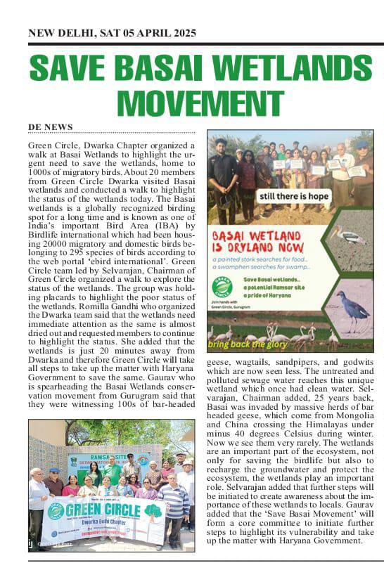 Green Circle Gurugram Basai Wetlands conservation movement A Walk was successfully organised by Green Circle Dwarka Chapter on 23rd march 2025